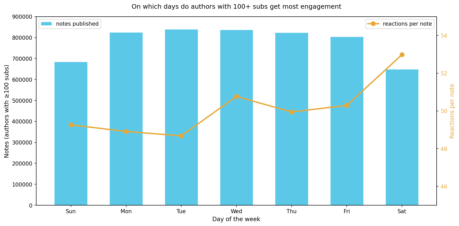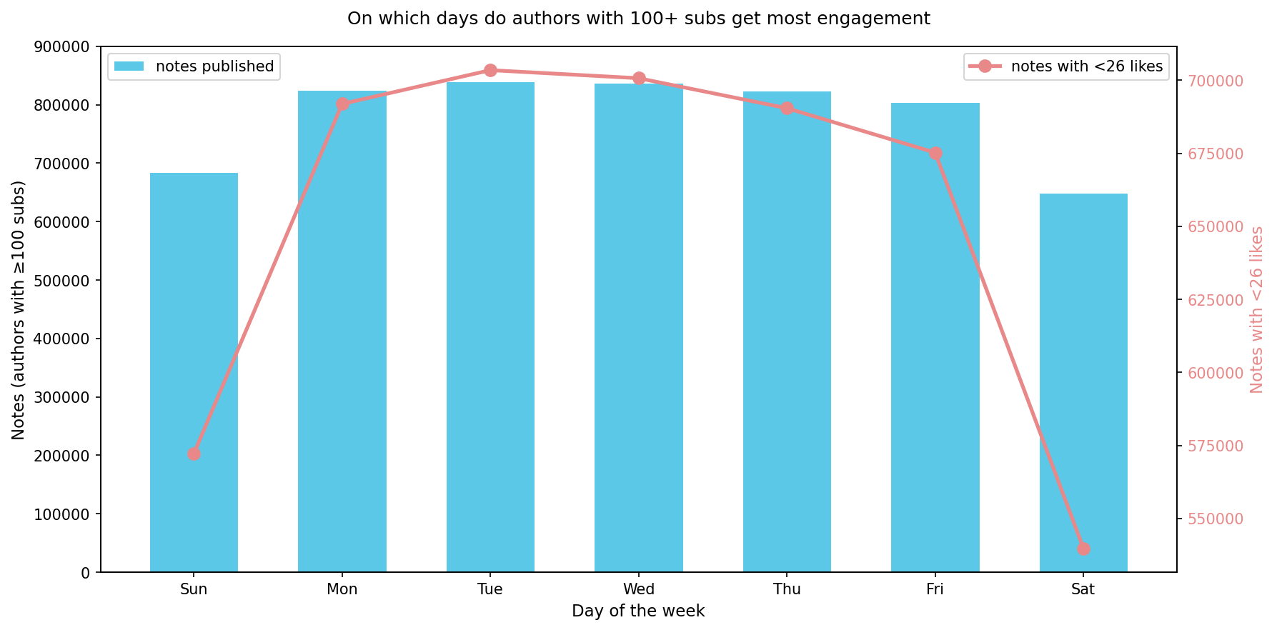 For the average creator, this is the main takeaway: weekends are the safer choice for your Notes.